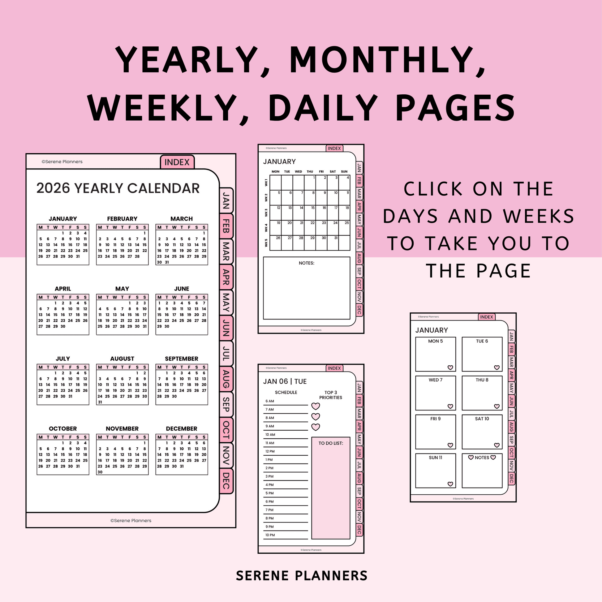 Stay organised with our 2026 Digital Phone Planner! Perfectly optimised for use on your phone using Goodnotes and other PDF apps, this planner combines a cute design with powerful functionality. From daily tasks to long-term goals, it’s all in one place, right at your fingertips. Whether you're managing appointments, setting reminders, or jotting down notes, this planner is your go-to tool for a productive year.