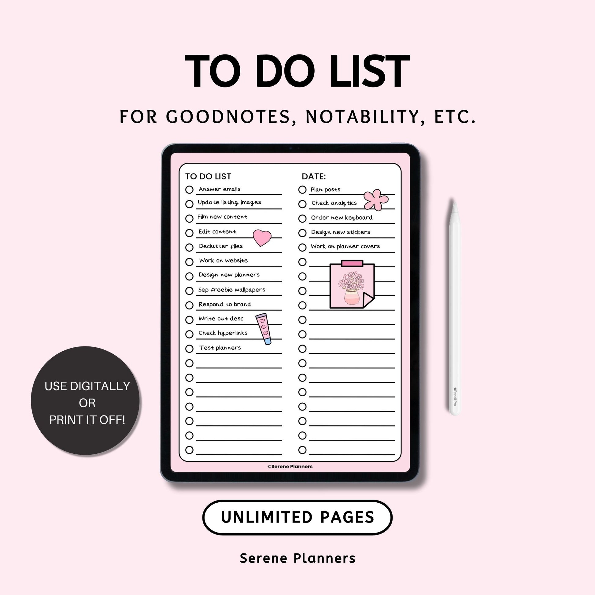 This To Do List template can be used on Goodnotes, Notability and other PDF readers. Or print it off and use it physically.